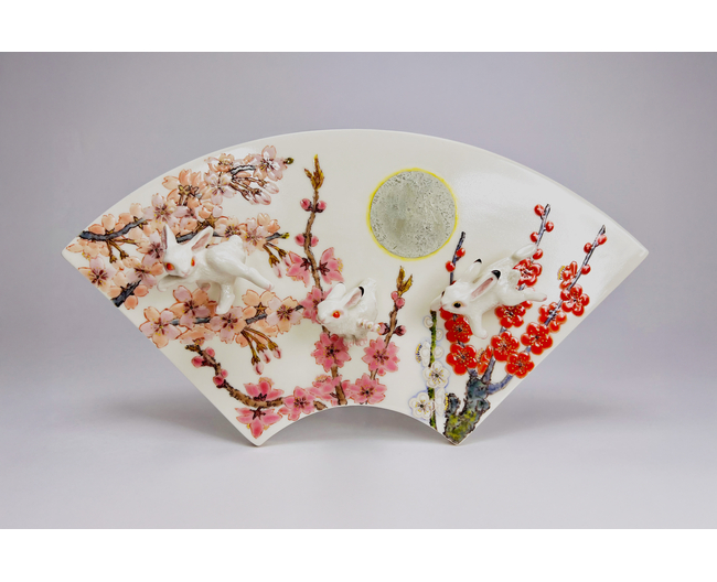 「うめももさくら」 H4.5×W28×D15.5cm 磁土・真鍮