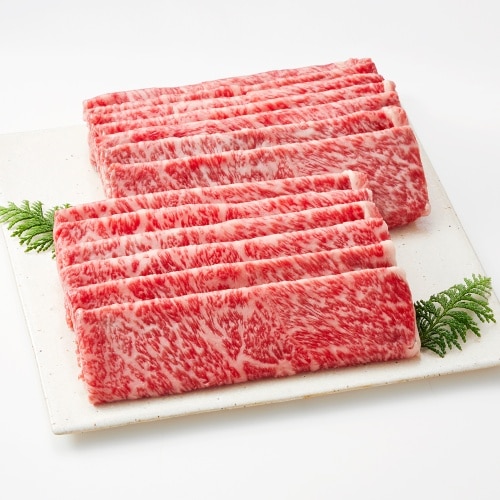 鈴鹿山系の良水に恵まれた近江・湖東の地で長期間肥育された近江牛。サーロインをすき焼き用にスライスしました。非常にやわらかくとろけるような肉質が特徴で、またキメこまやかで輝くようなツヤがあり美しく、見栄えのよい部位です。しっかりとした旨味があり、割り下にも負けない力強い近江肉の味を、是非すき焼きでご堪能下さい。