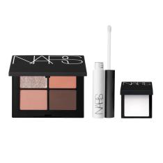 きめ細かくしなやかなテクスチャで美しい光沢と深みのある発色をもたらす4色のクワッドアイシャドーに、鮮やかな色を引き立て澄んだ発色を持続させる目もと用プライマー、光のベールをまとわせるように艶めくプレストパウダーの特製サイズがセットに。