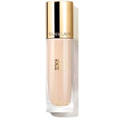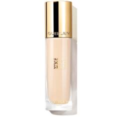 素肌に重ねるゴールドの輝き、究極のジュエリーは、この肌。24K ピュアゴールドとロージーマザーオブパールが生み出す輝きの連鎖。ゲランのスキンケアの叡智を惜しみなく注いだスキンケア成分85%配合のフォーミュラで肌そのものの輝きにもアプローチ。貴重なホワイトピオニーから抽出した2種類のエキスが肌をすこやかに保ち、さらに肌色も均一で輝きのある状態へ整えます。天然素材の効果を最大限に引き出すことで使うほどに美しい素肌へ。また厳選された2種のポリマーと3種の揮発性オイルが肌に密着する独自のメッシュ構造を形成することで色移りしづらく長時間ストレスフリーな美しさを保ちます。洗練されたグロウ、ノートランスファー製法のマットの2つの仕上がり。SPF15 PA+++