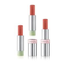 バナナを連想させる斬新で鮮やかな黄色を纏うバームは、アイコニックなトライアングルのデザインで、なめらかな付け心地に。イタリア発祥のフロステッドリンク、「バナナグラニータ」の氷が輝く様子を連想させる新「バナナバーム*」は、唇に洗練された血色感を与えると同時に、温かみのあるゴールドで唇を彩ります。こだわりの艶めきは、ゴールドラメとピンクラメが上質で繊細な光を放つことで表現されています。さらに、リップとしてだけでなく、チークとしても使うことができます。唇と頬に繊細なゴールドの艶めきを纏うことで、統一感のある洗練されたプラダらしいトータルルックに装います。