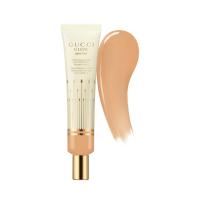 「グッチ グロウ スキン ティント」は、ヒアルロン酸*2が角質層のすみずみまでうるおいを届け、すこやかな肌に整えます。さらに植物由来の天然成分バクチオール(整肌成分)とリコリス(甘草)エキス*3が肌をなめらかに整えます。また、パール微粒子により自然な輝きを引き出す革新的なGucci Glow テクノロジーを採用。水のように軽やかなテクスチャーで「第2の肌」のように心地よくフィットし、適度なカバー力を発揮しながら、長時間うるおいと輝きのあるツヤ肌をキープします。
