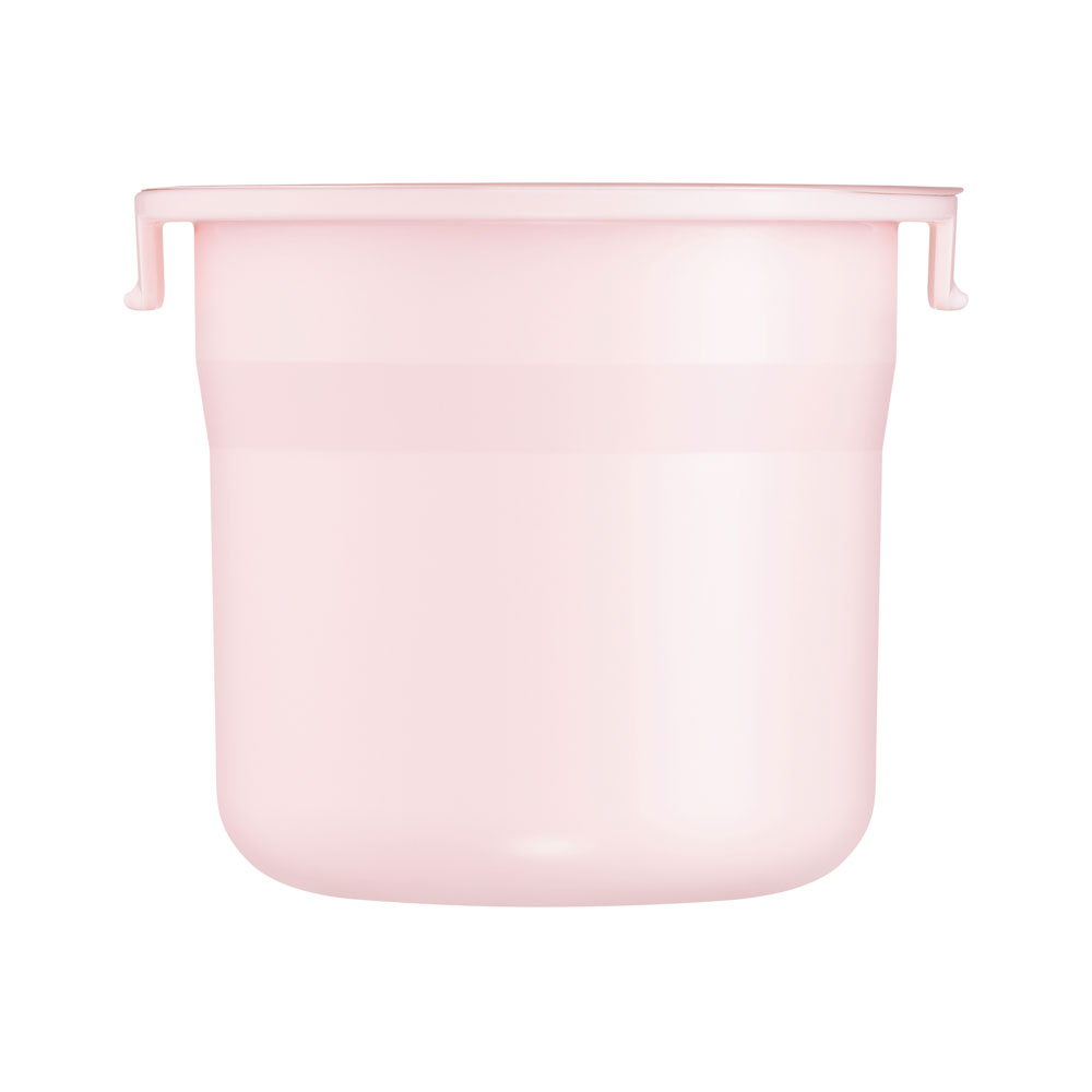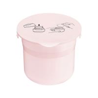 ・使い終わった本体容器を片方の手でおさえながら、口もとの2ヶ所にある突起部分に指をかけ、やさしく上に引き抜きます。