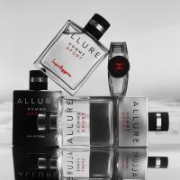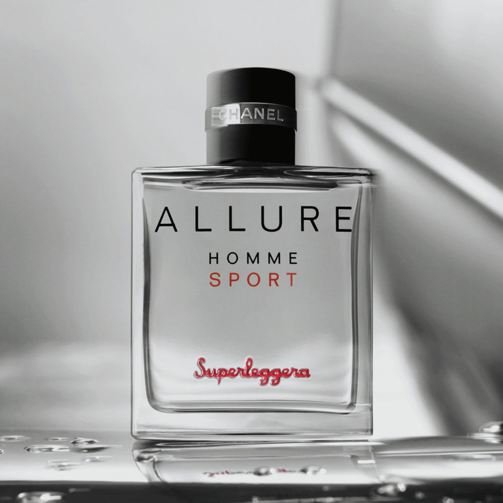 すっきりとコンパクトなアリュール オム スポーツのアイコニックなデザインを踏襲したクリアなスモーク ガラス ボトル。卓越した個性の象徴であるSuperleggeraのロゴが立体的な赤文字であしらわれ、スポーティな魅力を演出しています。