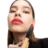 高発色で大胆なカラーが、唇の品格と存在感を惹きたてる、マットリップスティック。クチュールファブリックに着想を得た、しなやかに馴染むテクスチャー。軽やかで心地よい装いに、ドラマティックなカラーだけが際立つ。