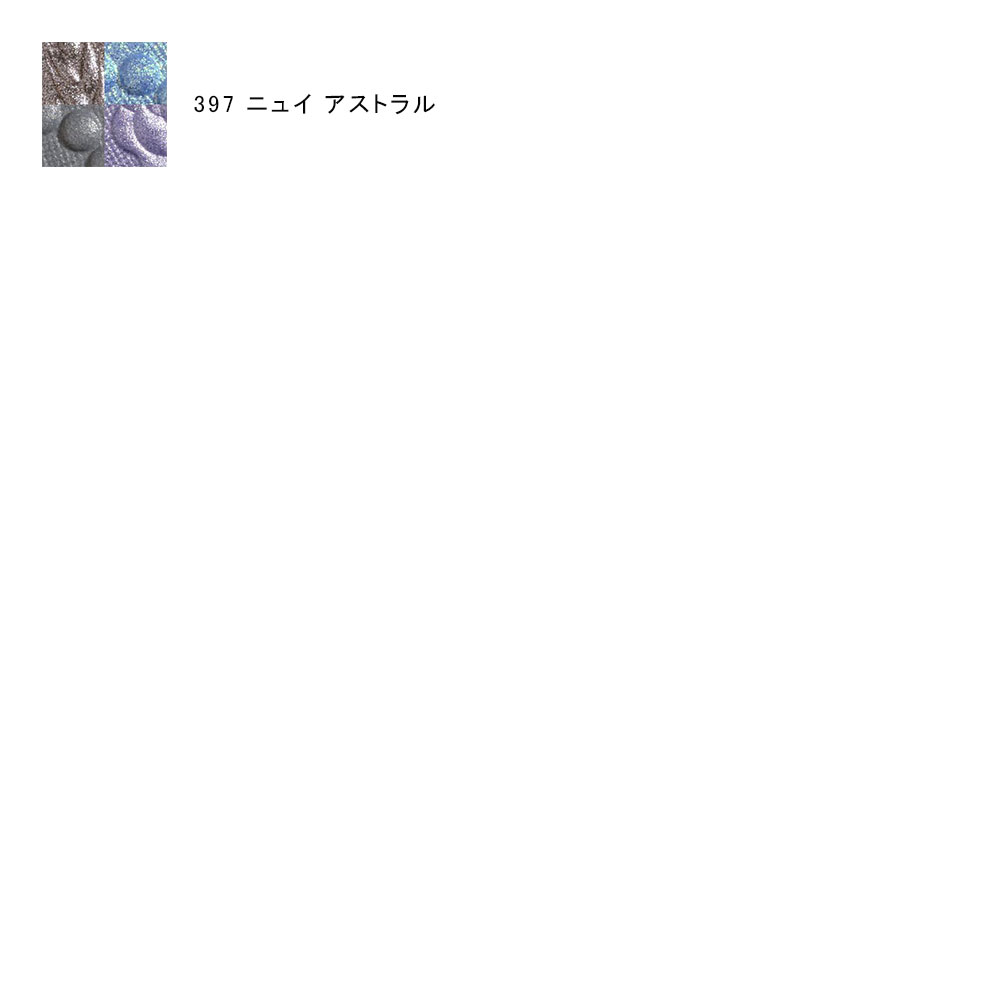 ・印象深い目もとに:ブルー グレイをまぶたにのせ、ラヴェンダーを重ねて陰影を演出します。まぶたの下から上へ、暗い色から明るい色へなじませます。