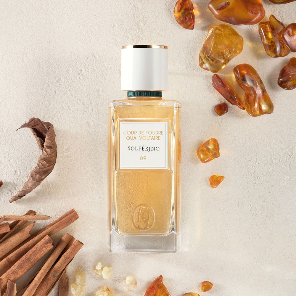 このフレグランスは、そんなヴォルテール河岸での「クー ド フードル(ひと目惚れ)」の瞬間をとらえた香り。アンバーが持つ魅惑的な側面を最大限に引き出し、ベルガモットとジャスミンが光を注ぎます。そして柔らかな光の中でサンダルウッドとベンゾインがハーモニーを奏で、トンカビーンの深みに静かに包まれていきます。