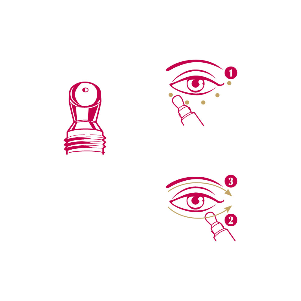 朝と夜のスキンケア時に、アプリケーターで目のまわりにやさしくなじませてください。