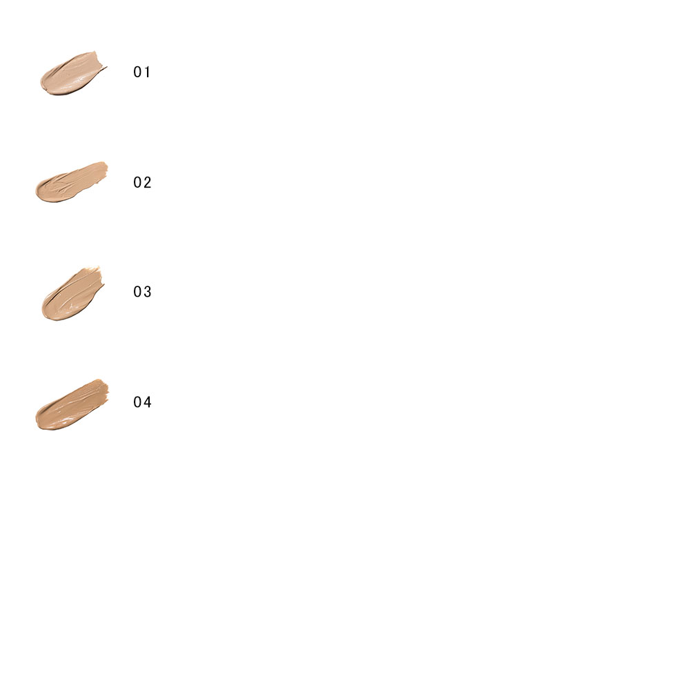 ・3mm程度を繰り出して使用します。顔の中央部分から外に向かってストロークし、指またはスポンジでなじませてください。目周り、小鼻周りなどは少量をのせてから軽く叩くようになじませるときれいです。コンシーラーとしてお使いいただく場合は、トントンと重ねてなじませてください。