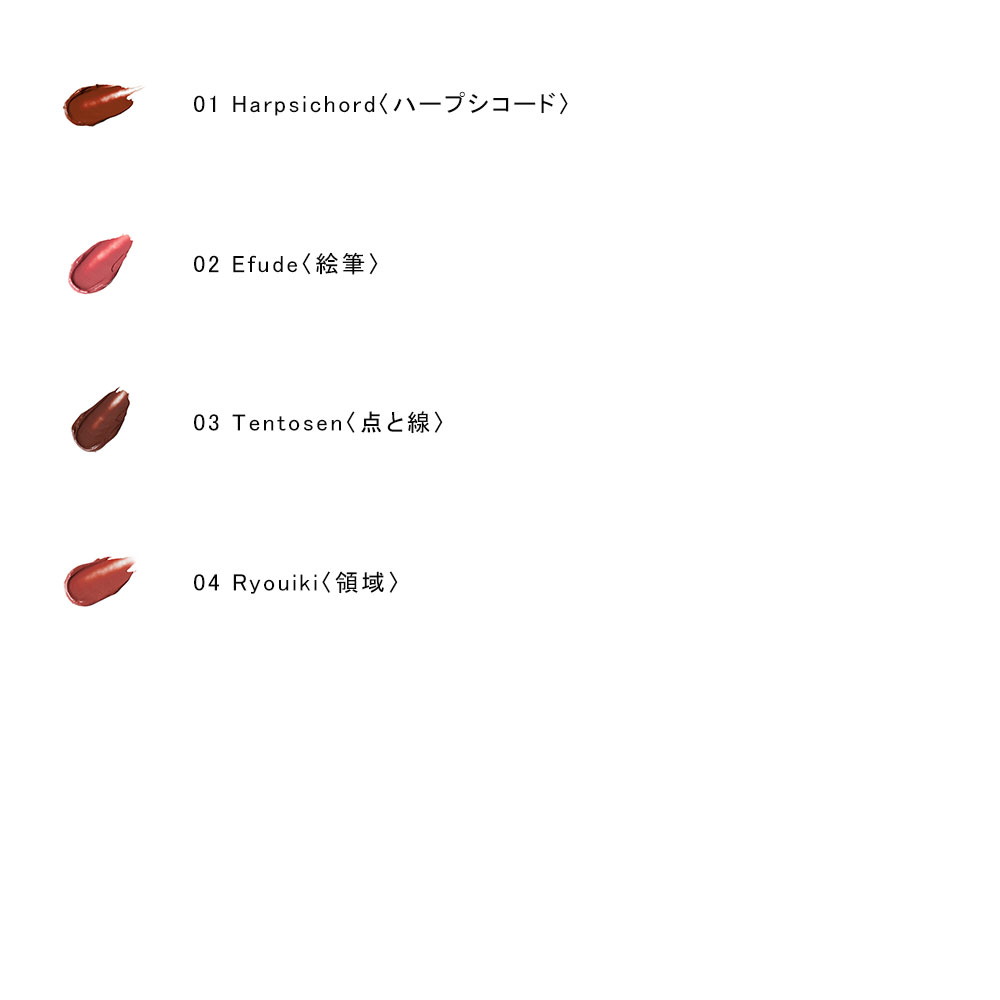 01ハープシコード:ブリックレッドにブラウンのニュアンスを重ねたテラコッタカラー。 自然体でありながら意志のある表情に。
