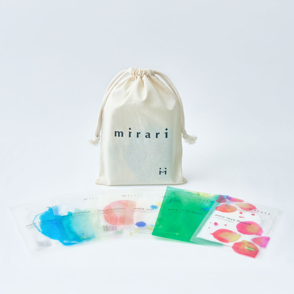 その日の肌印象や気分で選べる6種のシートマスクを巾着にセット。全種類をお試ししたい方や、大切な方へのギフトにもおすすめ。