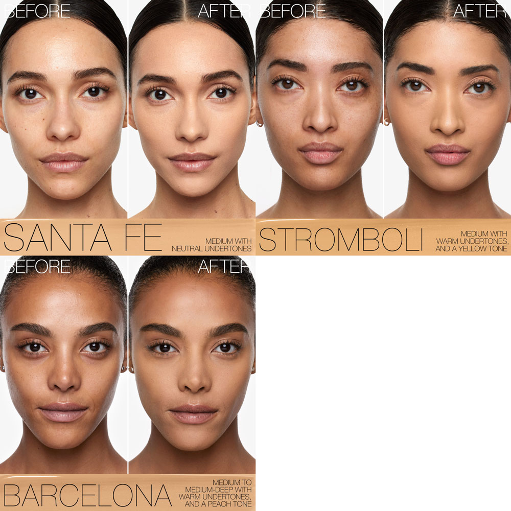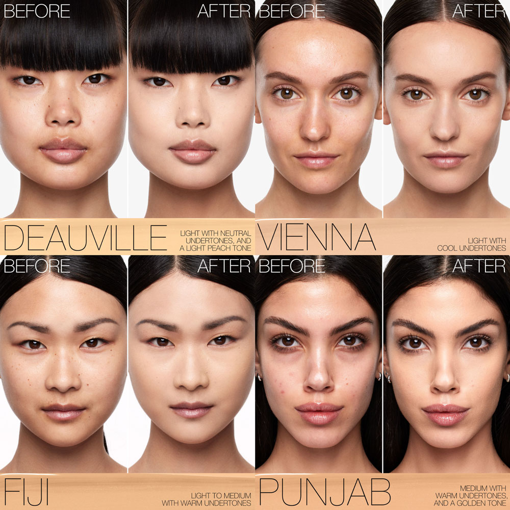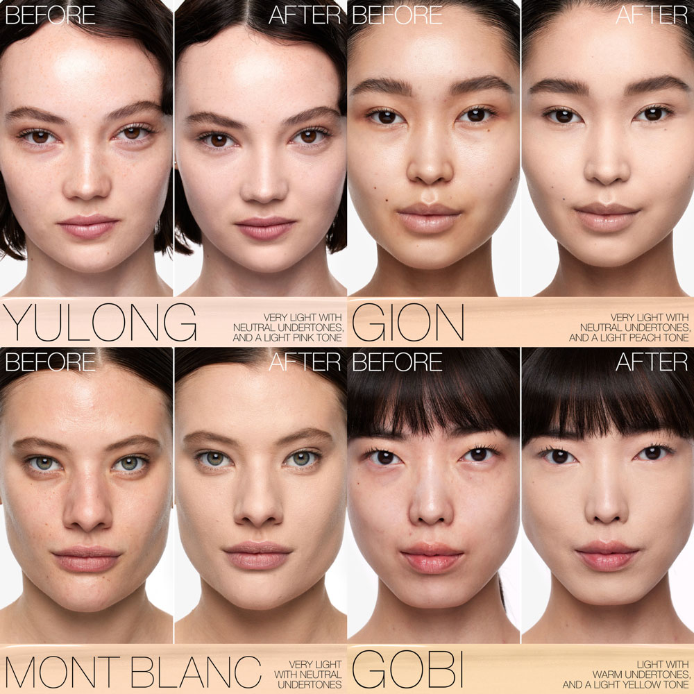保湿成分を配合した美容液のようになめらかに伸びるテクスチャーで、軽やかな使用感と通気性を備え、重ねても厚みを感じさせずにミディアム~フルカバレッジまで調整可能。