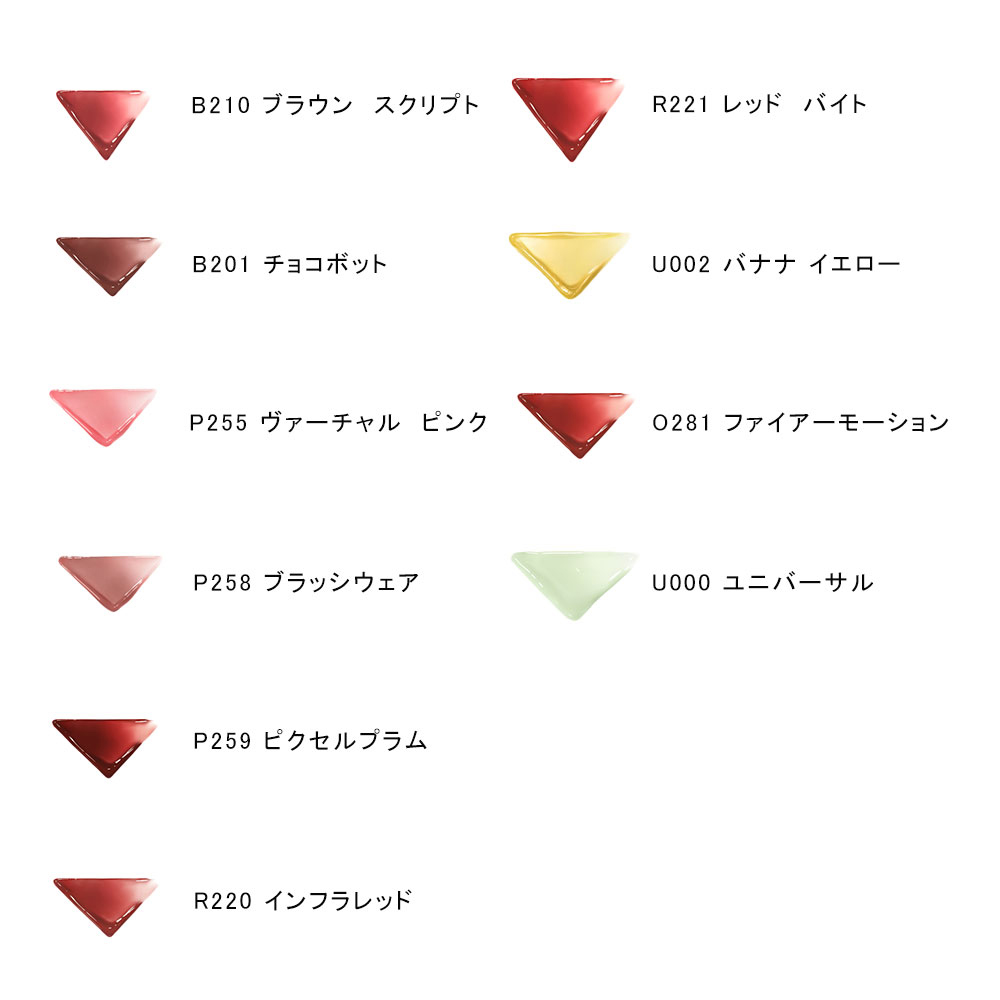 色展開にもこだわりを持ち、日常に溶け込むわずかな奇抜さを取り入れつつ使いやすさにも注目をして作られた10色。上質な発色を彩る8色と、艶やかな仕上がりを際立たせる2色で構成されています。