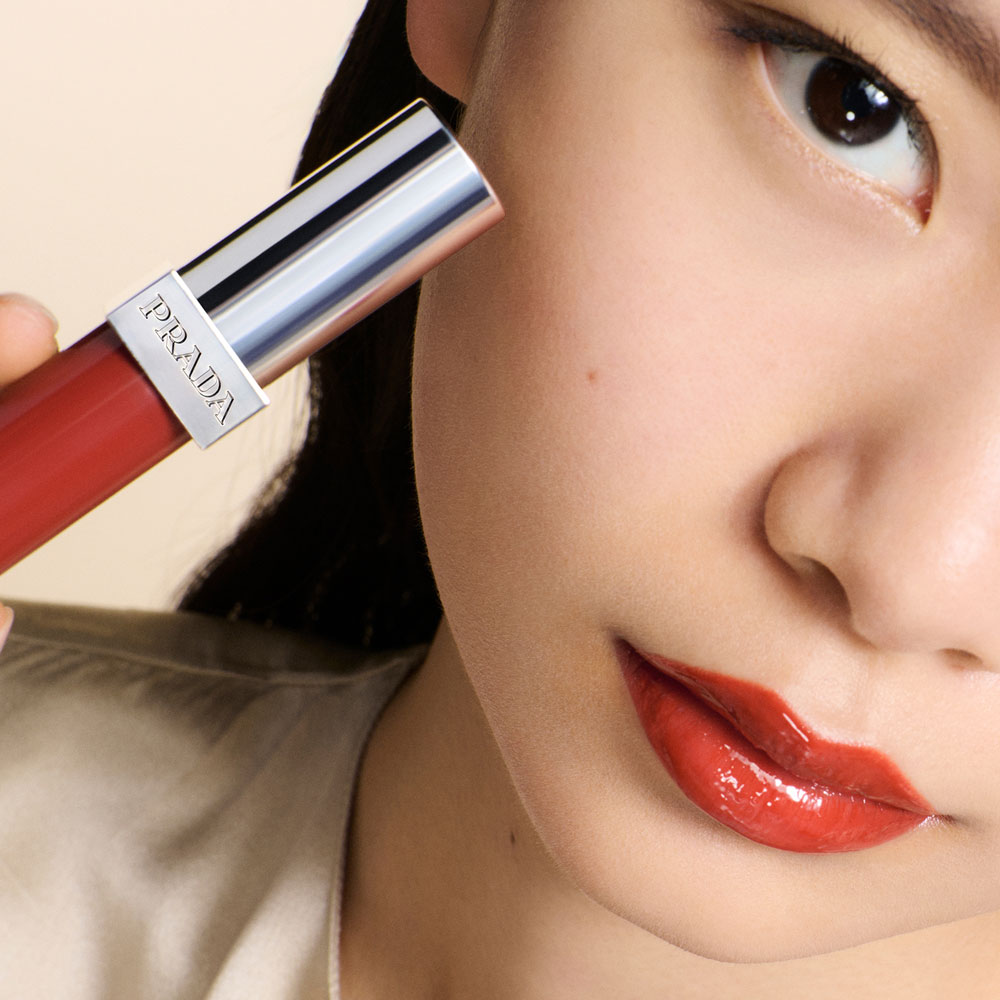 みずみずしい潤いを保ちながらも、まるでreflection - 反射するような輝き - を演出する「プラダ リフレクション」。ブランドを象徴するバームとカラーリップをまるで融合させたような先進的なアイテムで、アイコニックな10色展開で登場します。