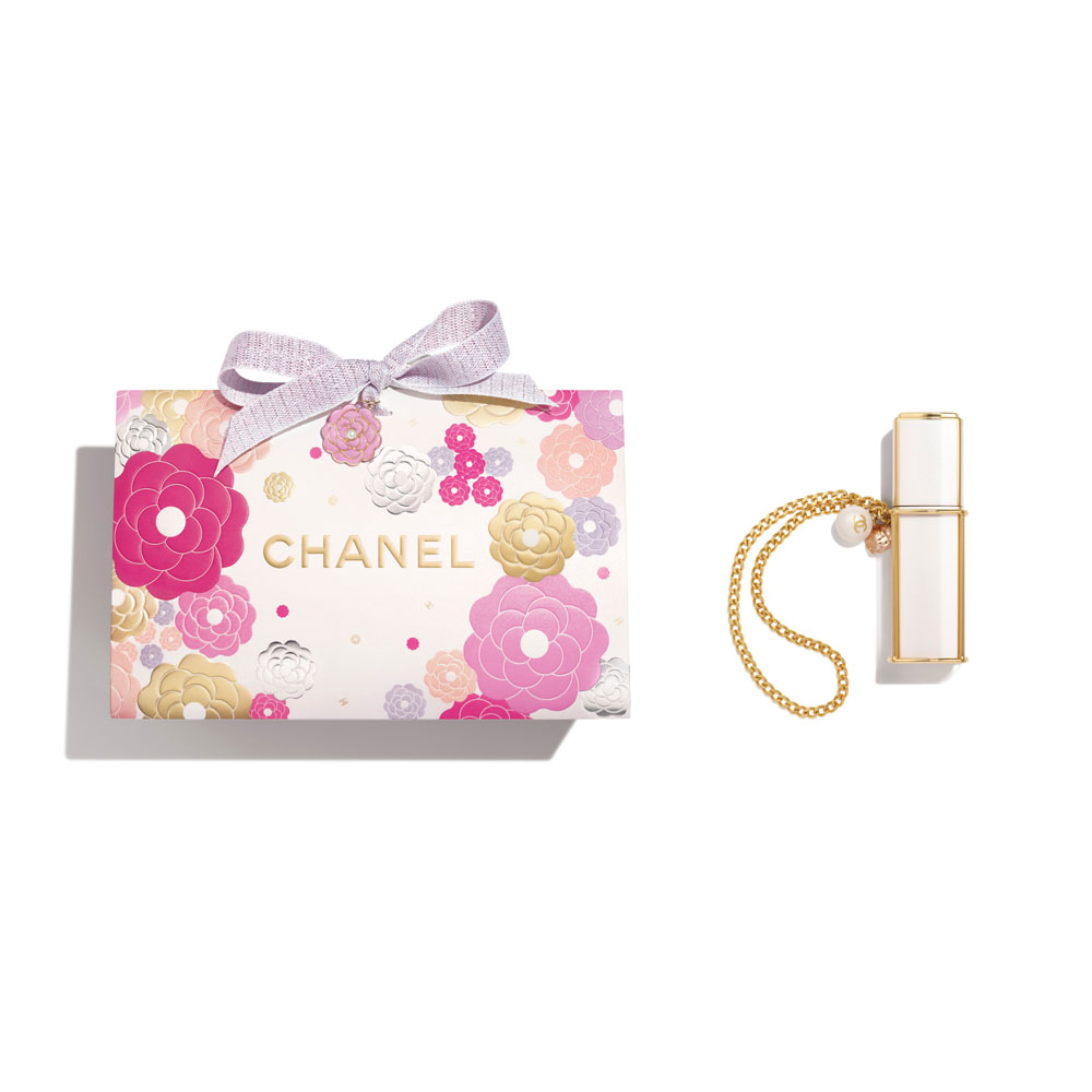 チェーンストラップがあしらわれた、どこにでも持ち歩ける7mLサイズのコレクターズ アイテム。手首にまとっても、ハンドバッグにしのばせても。
