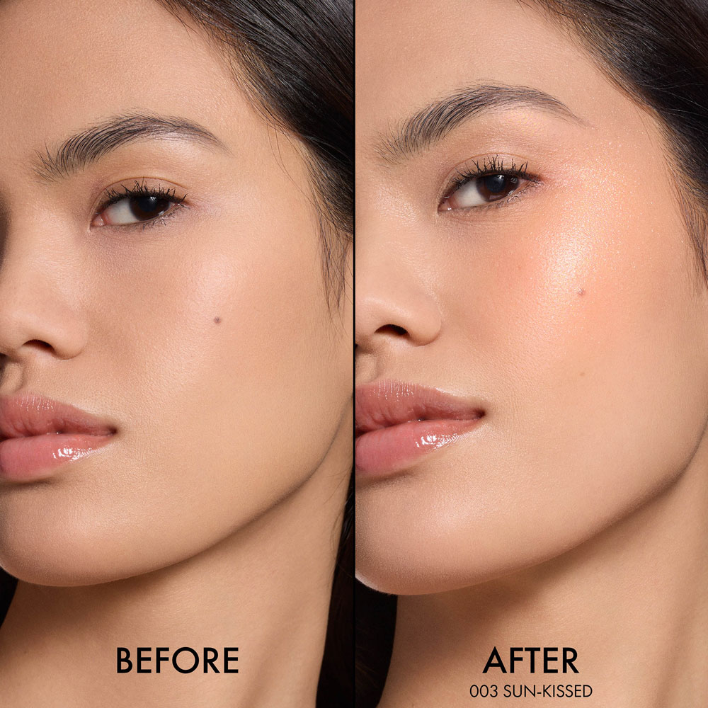 ・直接指先もしくはブラシを使って、頬骨、ノーズライン、デコルテに塗布してください。ハイライターの輝きをさらに高めるには、ブラシにディオールスキン フォーエヴァー メイクアップ フィックス ミストをスプレーしてハイライターをお使いください。