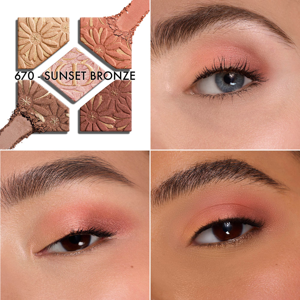 670 サンセット ブロンズ:ゴールドの輝きを帯びたパール ピンク、フレッシュ コーラル、シャンパン ゴールド、サテン ブラウンが溶け合う、夏のサンセットの輝きをまぶたに映すブロンズ ハーモニー