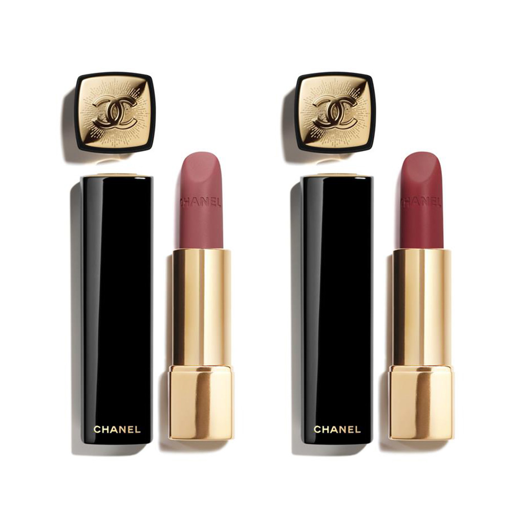 鮮やかな色合いと、マットなのにつやめく質感で唇をやわらかに彩るルージュ アリュール ヴェルヴェット。中でも人気のインテンスなローズウッドのアプストレとレッドウッドのルージュ ヴィを、ダブルCロゴを飾ったホリデーだけの特別なパッケージに。