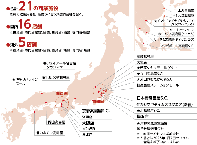 グループ総合戦略「まちづくり」のもと、百貨店、専門店、もしくはその両者を組み合わせた商業施設を、ASEANおよび国内にバランスよく配置し展開しています。