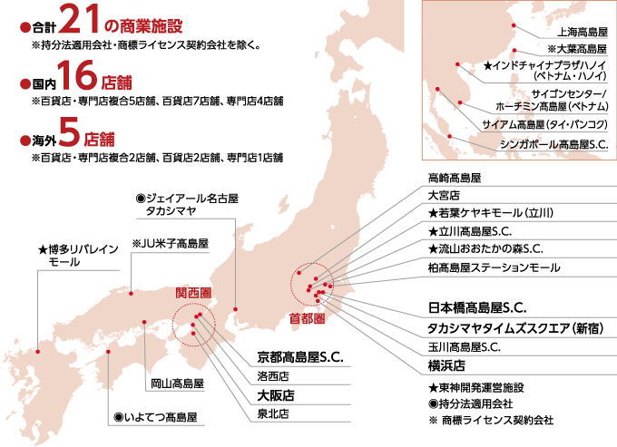 高島屋グループはグループのコア事業である百貨店業を中心に、商業開発業、金融業、建装業など連結子会社36社によるグループ経営を通じて安定的に成長し続けることを目指しております。