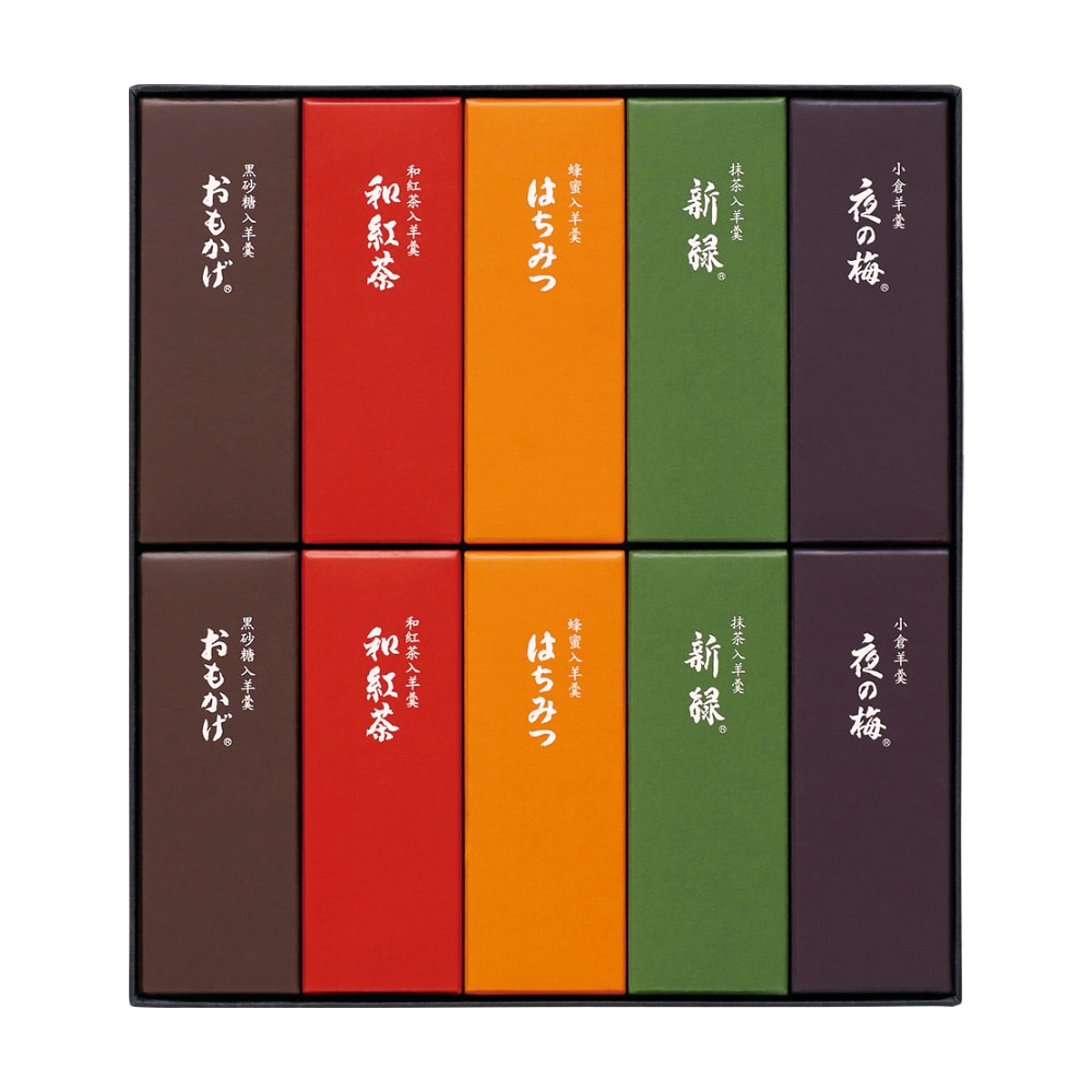 夜の梅(小倉)・おもかげ(黒砂糖入)・新緑(抹茶入)・はちみつ(蜂蜜入)・和紅茶(和紅茶入)各50g×2
