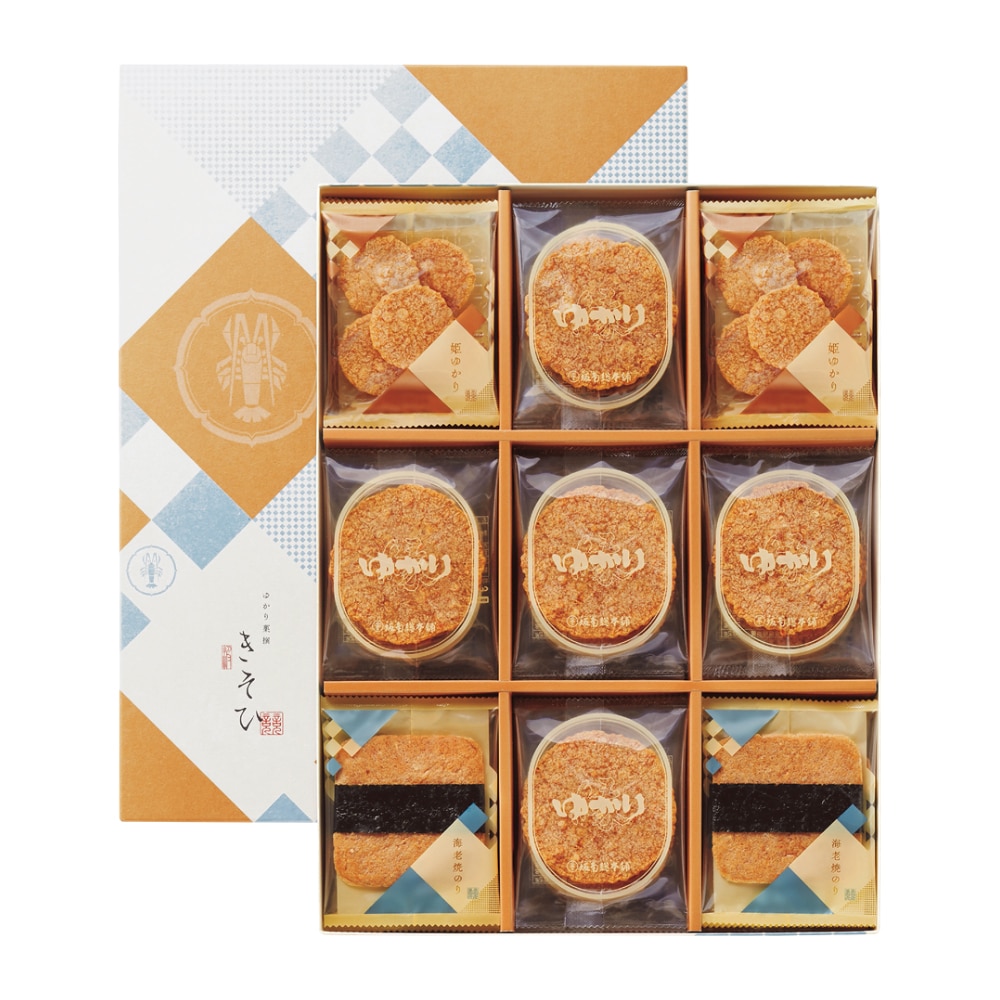慶長(醤油・しぶき海苔・胡麻・うすくち醤油各5)、慶凰(醤油・塩各4)、豆柿・かきもち昆布各3