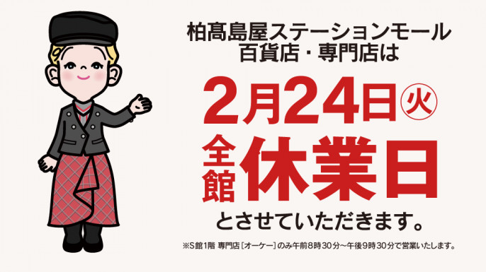 〈2月24日(火)柏高島屋ステーションモール専門店・百貨店 全館休業日のご案内〉