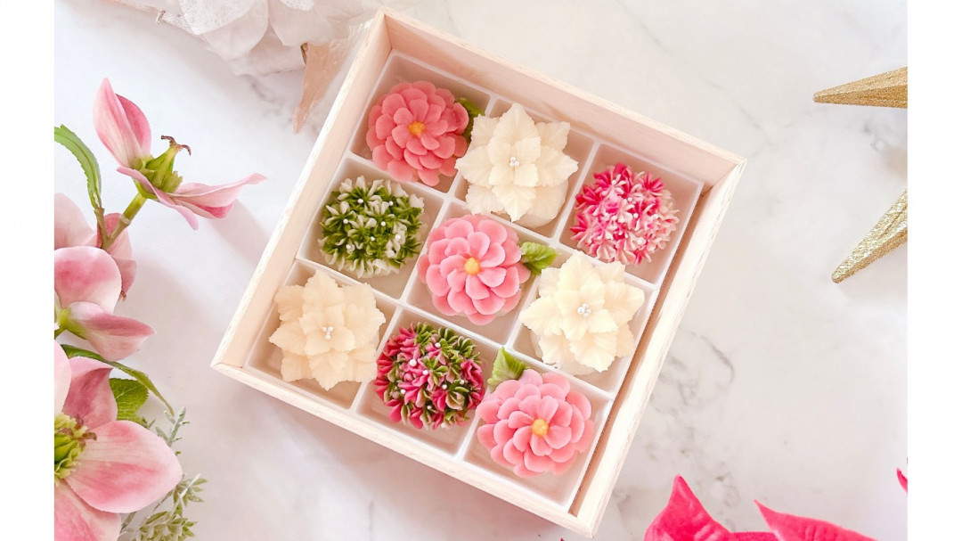 一手間加えたもちもちのお団子の上にあんこでお花を絞り、 あんこのお花®︎のお団子ボックスを作ります。