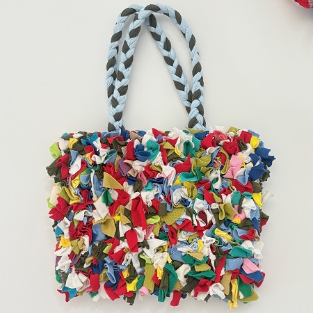 そこで暮らす女性たちが、捨てられた布の中から汚れていないものを探し出し、丁寧に洗浄し、ひとつひとつ手織りで仕上げた世界にひとつだけのバッグです。