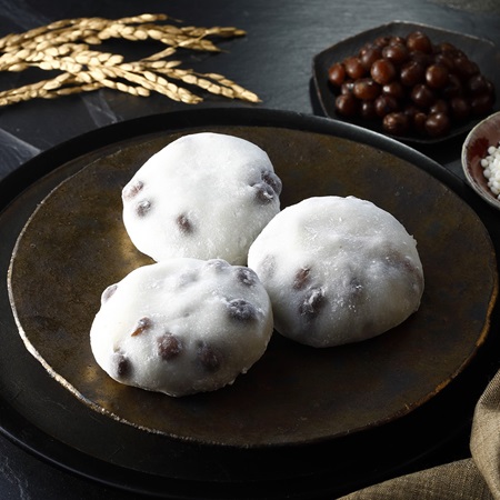 もち米から杵つきでつき上げたこしのある生地に赤えんどう豆を練り込み、粒餡を包みました。
