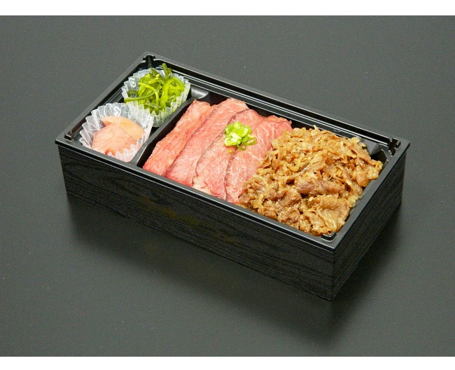厳選された米沢牛を贅沢に使い、ジューシーなステーキと旨みたっぷりのすき焼きを一度にお楽しみいただける特製弁当です。