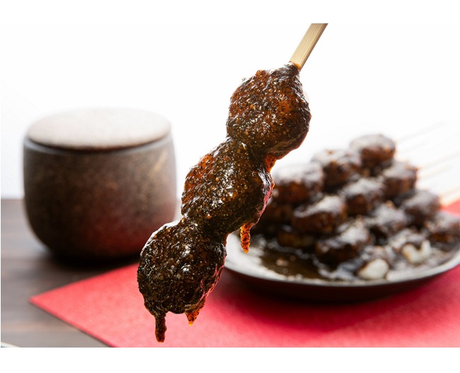 くるみ・えごま・ごまをたっぷり使用した、 しょう油みそたれの三つ玉五平餅です。