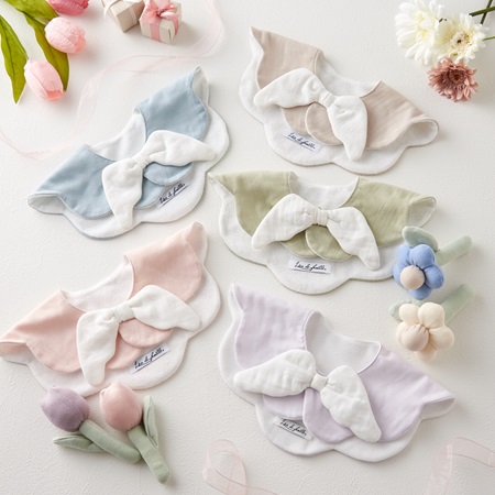 ▲もこもこ天使スタイ 各3,300円