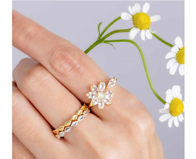 花占いをモチーフに、想い重ねるマーガレットリングは、ひとつひとつの花びらに「願い」を託すように静かに心に寄り添います。