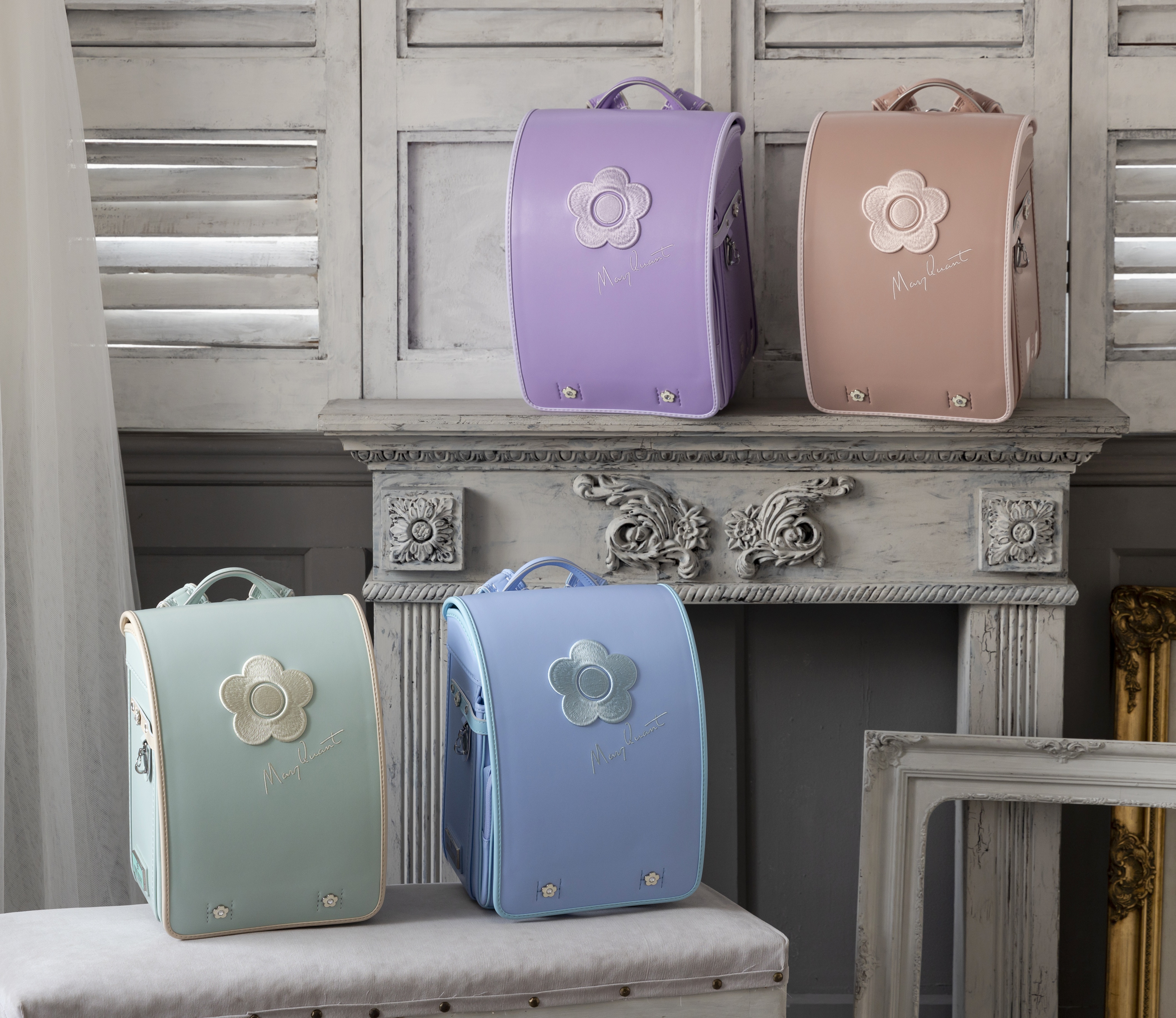 ブランドモチーフである花柄「クリムザンテーム」や「キャット」など、オリジナルのディテールをふんだんに詰め込んだ、胸がときめくような愛らしいランドセル。