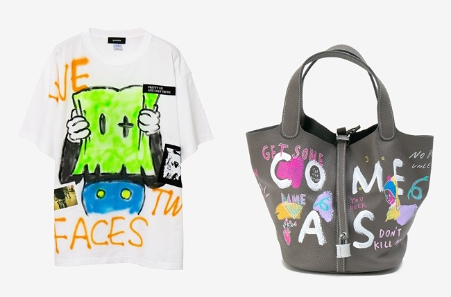 ラグジュアリーなバッグにメッセージ性のある落書きのようなペイントを施すなど、アートとファッションの垣根を越えた新しいクリエーションの世界を提案します。