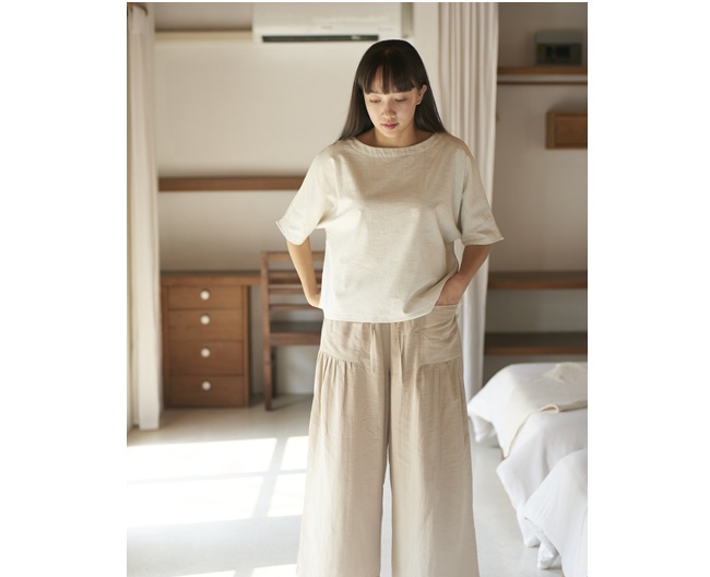 ボトムス ガーゼギャザーワイドパンツ(ロング)16,500円