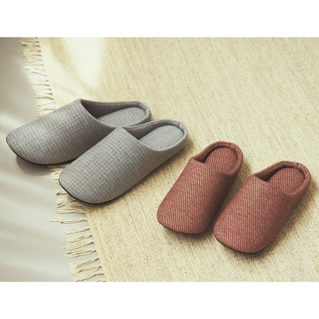 シンプルで季節を問わず活躍するグレーと、生地を起毛させ風合いを出したワインレッド。見た目にも縫製にもこだわった、履きやすいスリッパです。