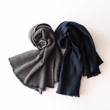 ストールとしても使えるサイズ。表地がウールと綿のリバーシブルになっており、季節や肌触りでお好みで使用していただくことができます。
