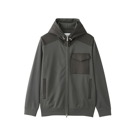 布帛とジャージーをコンビ使いしたハイブリッドジップパーカーです。