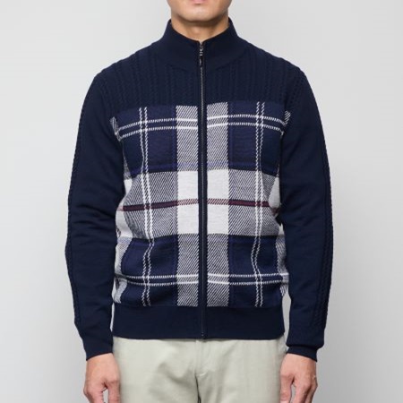 NEWYORKERのアイコンでもあるニューヨーカータータン柄とケーブル柄を組み合わせたスタンドフルジップニット。アウター感覚で着用でき、カジュアルアイテムながらきれいめに着こなせるニットアイテムです。滑らかな肌触りで着心地が良く、秋口や春先の羽織りとして活躍します。