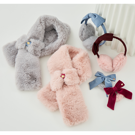 やわらかい手触りのフェイクファーを使用した防寒小物。どんなスタイリングにも合わせやすい落ちついたカラーリング。 姉妹でお揃いや、クリスマスギフトにもおすすめです。