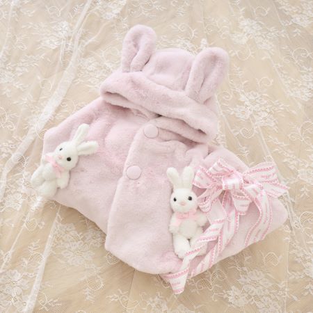 うさぎちゃんとうさ耳がポイントのマント。とびきりかわいい冬のおでかけに。