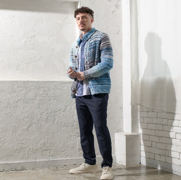 左右異なる編み組織を組み合わせたカーディガン。 手編みの様な感覚が楽しめます。