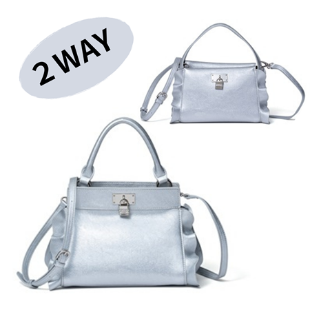 ゴード調のヴィンテージ感ある素材を使用したシリーズ。サイドのフリルや南京錠のモチーフで甘さを、お色はあえてクールにして、甘辛MIXでジル スチュアートらしくまとめました。 ショルダーバッグとしてもハンドバッグとしても使える2WAY仕様で、コーディネートやシーンに合わせてアレンジ可能です。小さめ・コンパクトなサイズ感ながら、500mlペットボトルも収納できる実用性も兼ね備えています。裏地にはロゴジャガードを使用し、細部までこだわりました。自立するしっかりとしたフォルムで、見た目にも美しく、使いやすさも抜群です。 無地の落ち着いたデザインは、カジュアルにもクラシックにも馴染み、デイリーからきちんと感のある場面まで幅広く活躍します。