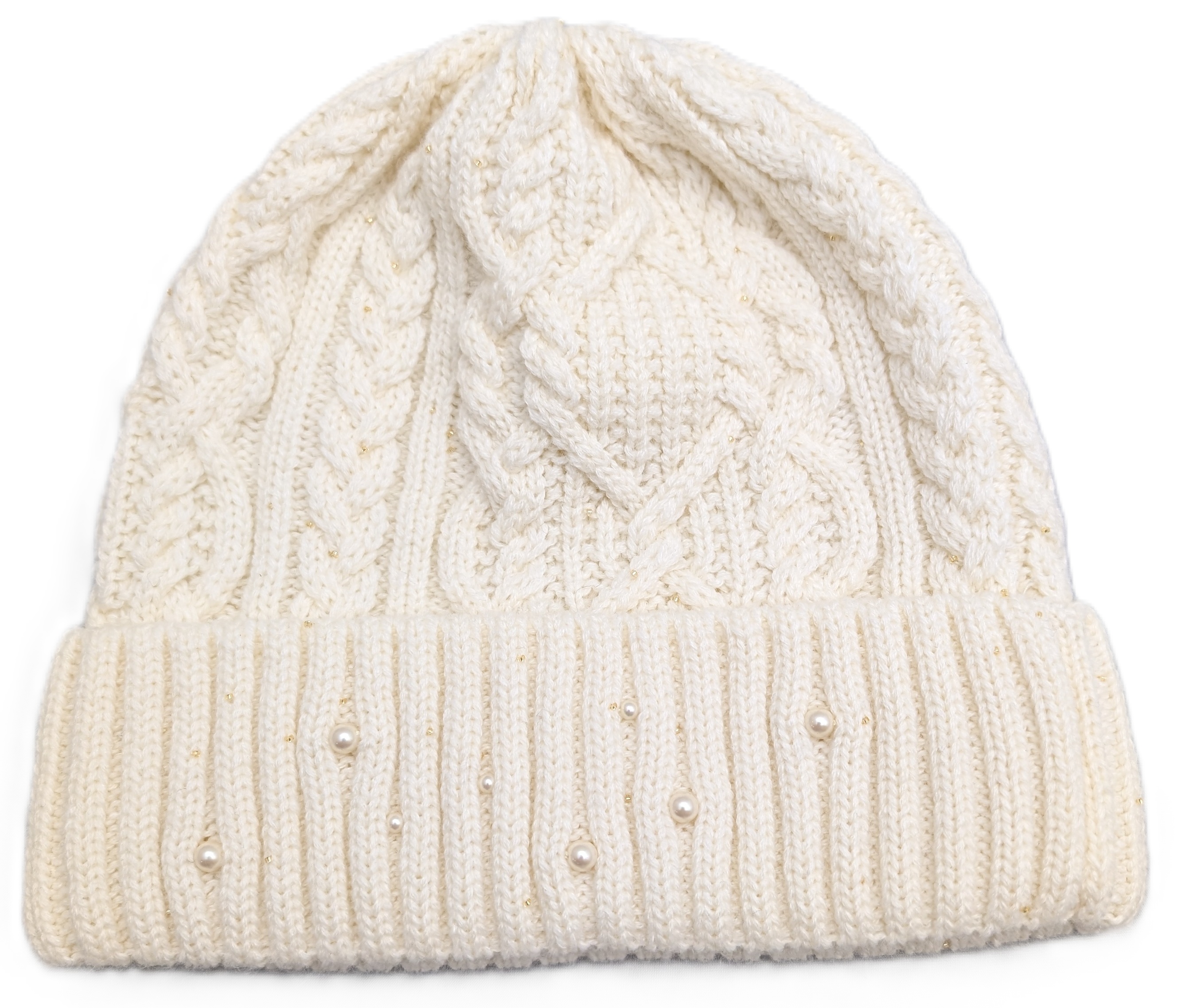 ビーズを編み込んだニット帽です。 上品なキラキラとパールのアクセントで、 冬の装いを華やかにしてくれます。