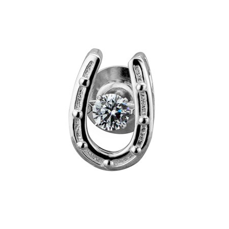 ヨーロッパで古くからお守りとして知られる馬蹄のモチーフ。クロスフォーカツトのキラキラ輝くガラスはゆらゆら揺れていて注目度抜群。