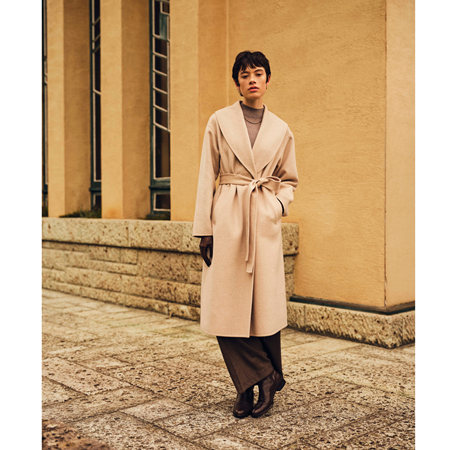 タケオキクチ定番の4面配色カシミヤマフラー。巻くだけでカラーのグラデーションがお洒落さを、カシミヤの発色の良さ・毛並の良さが高級感を演出してくれます。