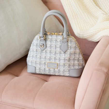 キラッとひかるラメ糸やリボンが織り込まれた国産のファンシーツイードを使用。シンプルなフォルムながらも上質感を感じさせるバッグです。単色なので、冬のコーディネートに合わせやすいです。
