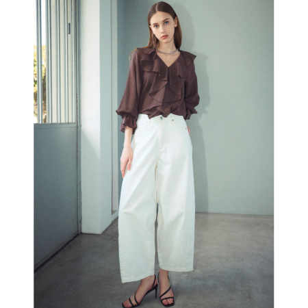 スカートともワイドパンツとも相性が良いブラウスです。同素材のスカーチョとのセットアップも素敵にお召いただけます。